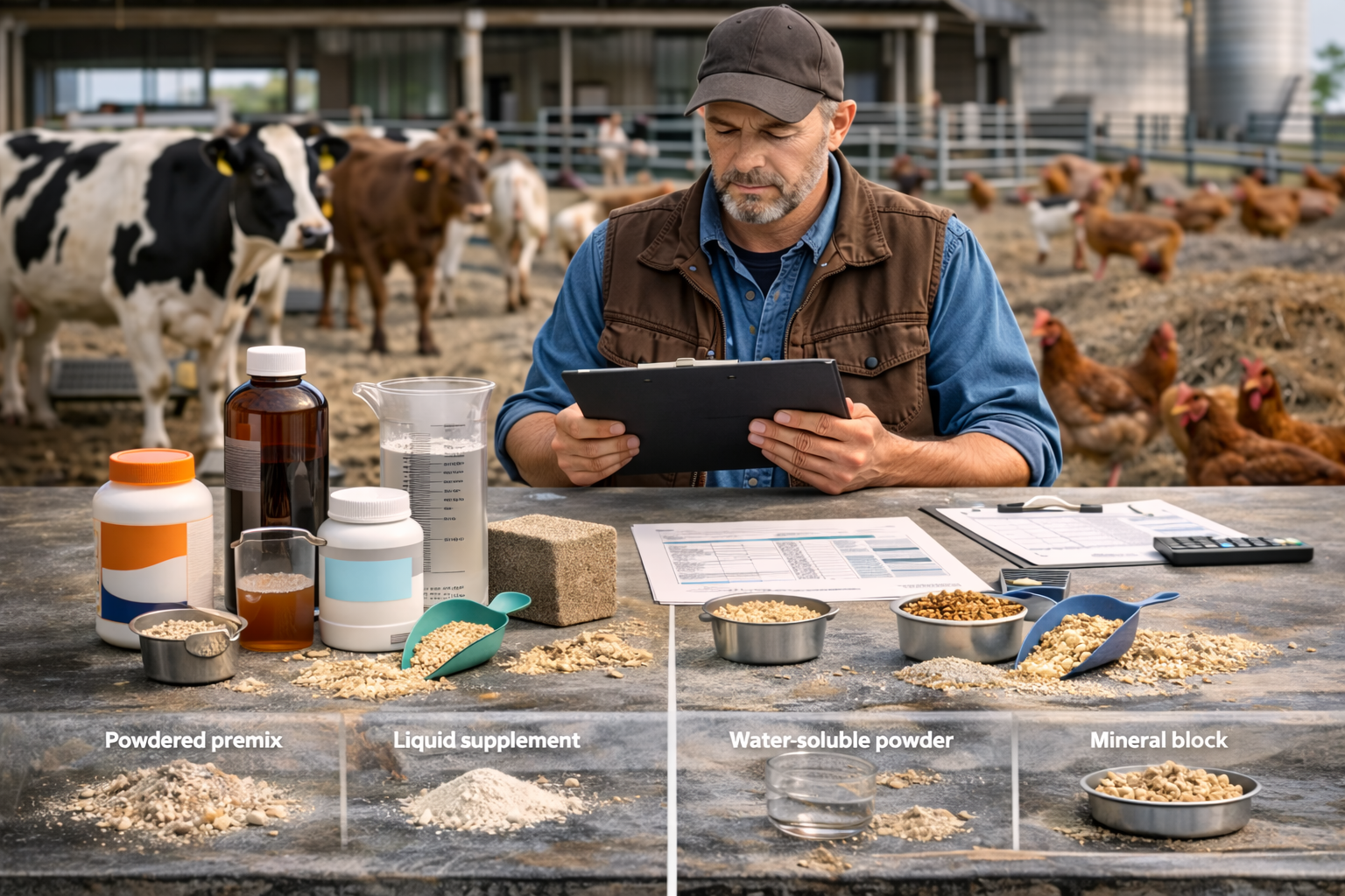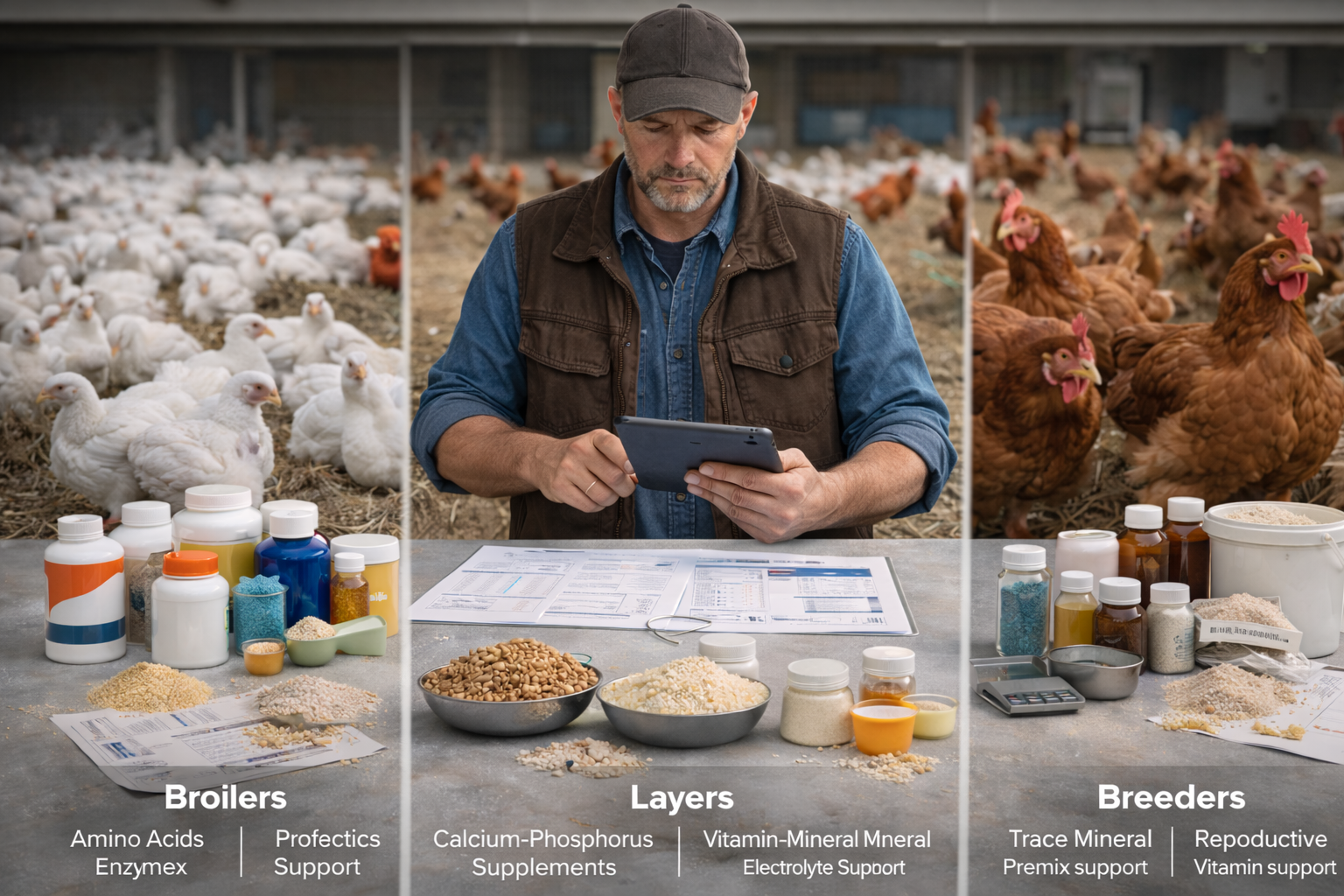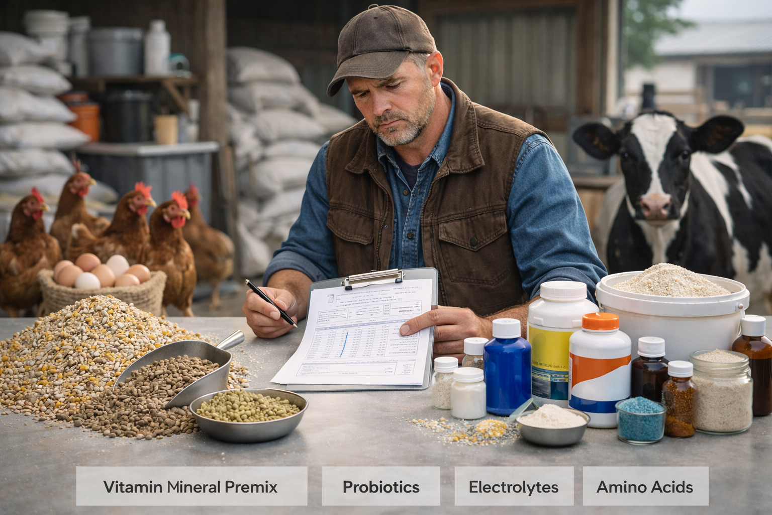 When used correctly, supplements can improve growth performance, milk yield, egg production, feed conversion ratio (FCR), product quality and resilience to stress; when used poorly, they waste money and may even impair performance. This guide explains what supplements are, when they make sense, how to choose them species‑by‑species, and how to avoid the most common purchasing and usage mistakes.